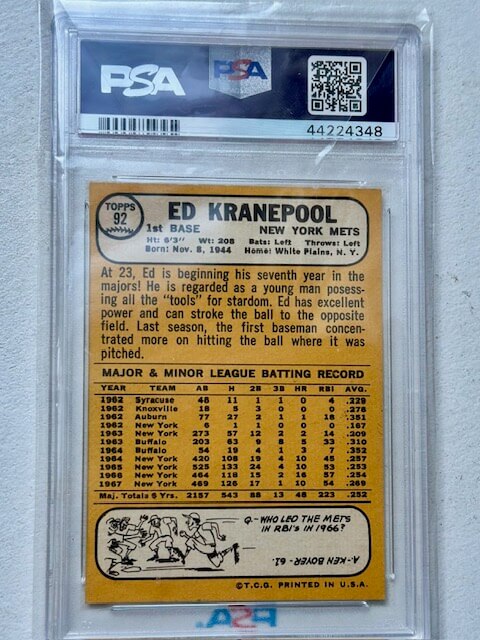 1968 Topps Ed Kranepool #92 PSA Authenticated New York Mets Card