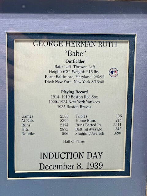 Features a framed Babe Ruth Hall of Fame Induction Day photo