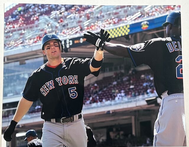 Celebrate a classic Mets moment with this dynamic photo of David Wright crossing home plate as Carlos Delgado congratulates him. This standout piece is perfect for fans who collect premium Mets memorabilia.