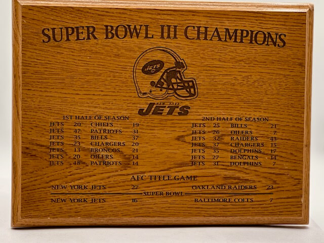 - NEW YORK JETS 1968 SUPER BOWL III CHAMPIONS Wood Plaque