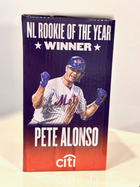 Celebrate one of the brightest moments in New York Mets history with this Pete Alonso National League Rookie of the Year bobblehead, originally issued by Citi Bank. This collectible honors Alonso’s record-breaking 2019 season and his rise as one of baseball’s premier power hitters.
