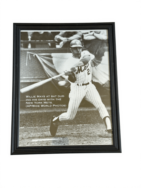 This framed photograph is a standout piece for collectors searching for authentic New York Mets memorabilia that showcases Willie Mays during his unforgettable late‑career return to New York. The image captures Mays poised at the plate, eyes fixed on the incoming pitch, wearing the Mets uniform that symbolized the full‑circle close of his legendary journey. The sharp AP composition highlights his timeless swing mechanics and the unmistakable aura he carried even in his final seasons. Collectors who appreciate Mays’ full career arc will find it pairs perfectly with our Willie Mays New York Giants Career Stats Photo, creating a powerful two‑piece display that celebrates both his early dominance and his emotional return to New York. A premium visual tribute for fans who want a meaningful, museum‑grade piece of baseball history.